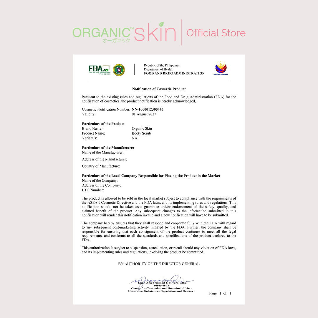 Organic Skin Japan is shining light on our derrieres with our very own BOOTY SCRUB! Pamper your peaches and improve skin texture of stretch marks, cellulites, scars and skin discoloration. Add this to your routine to cleanse away acne causing bacteria. It can improve appearance of butt acne after each use. It contains essential fatty acids to refine lines and address dryness, leaving smoothness BEHIND. Suggested to use every other day, or as needed to boost confidence in your bikini area to get that clear, soft supple cheeks.
