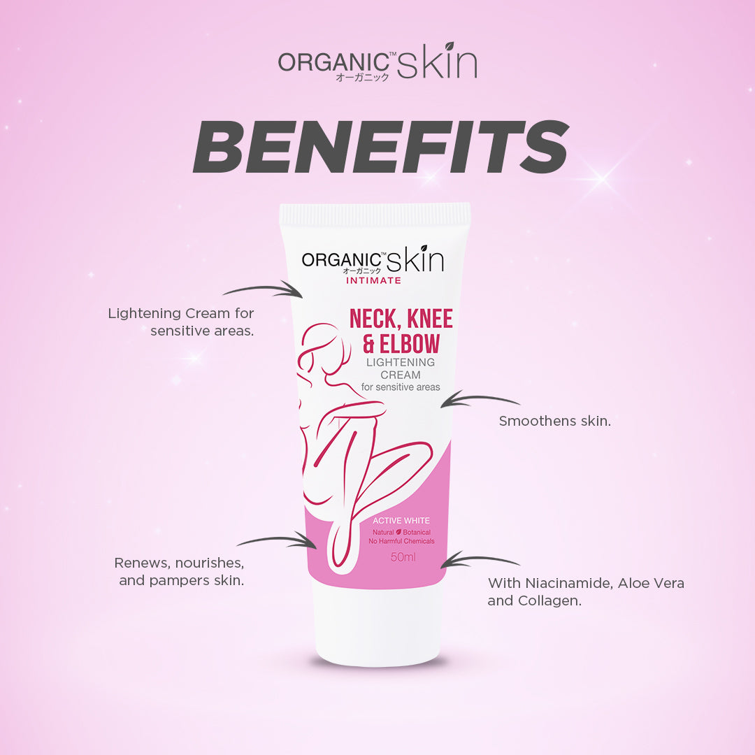 To complete your beauty line, Organic Skin Japan formulated the latest technology to enhance and whiten the most neglected part of your body..the neck, knee, and elbow. With regular use this cream, see how your skin becomes renewed, nourished, and pampered. Feel the smoother, brighter change that will bring out the confidence in you!